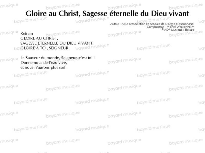 Gloire au Christ, Sagesse éternelle du Dieu vivant