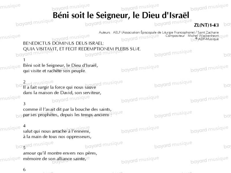 Béni soit le Seigneur, le Dieu d'Israël - ZL(NT)1-43