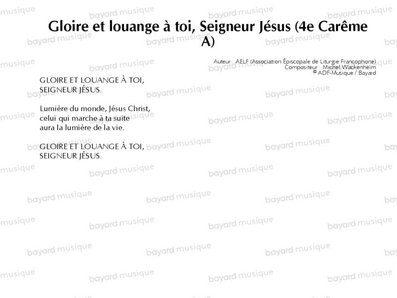 Gloire et louange à toi, Seigneur Jésus (4e Carême A)
