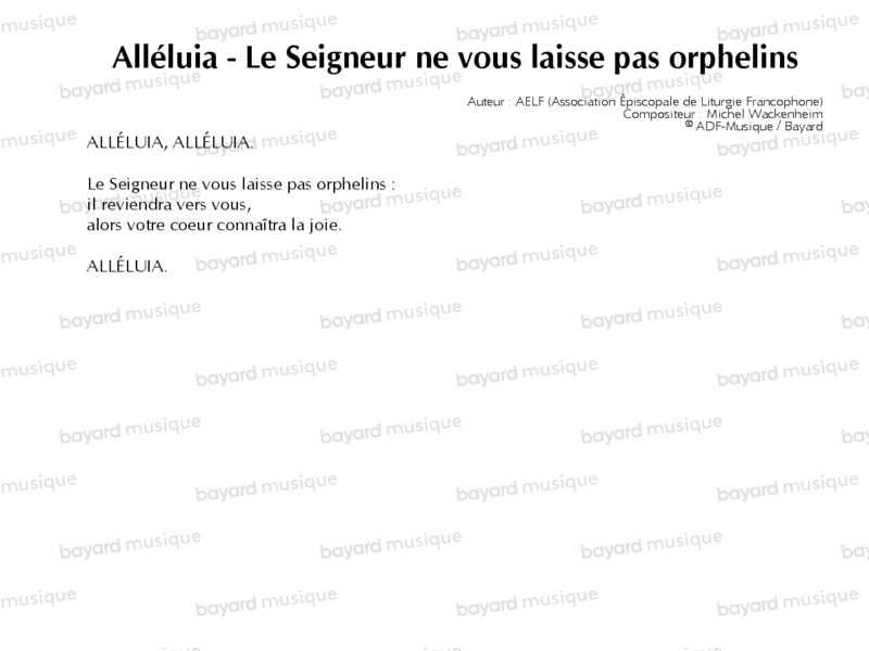 Alléluia - Le Seigneur ne vous laisse pas orphelins
