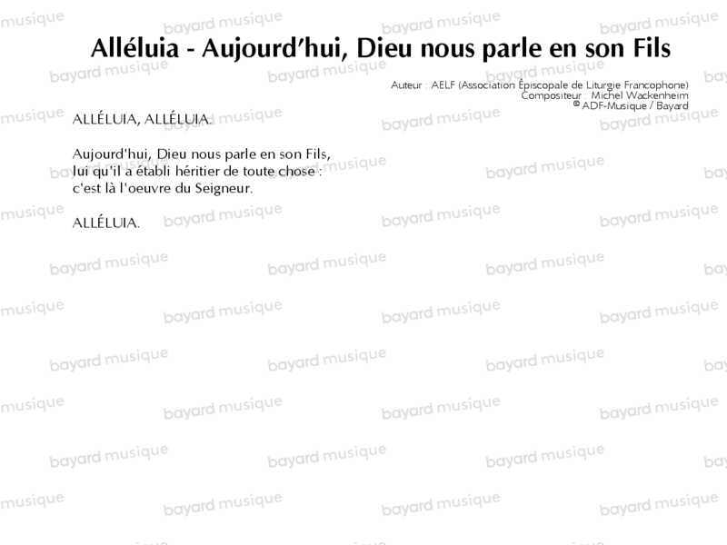 Alléluia - Aujourd’hui, Dieu nous parle en son Fils