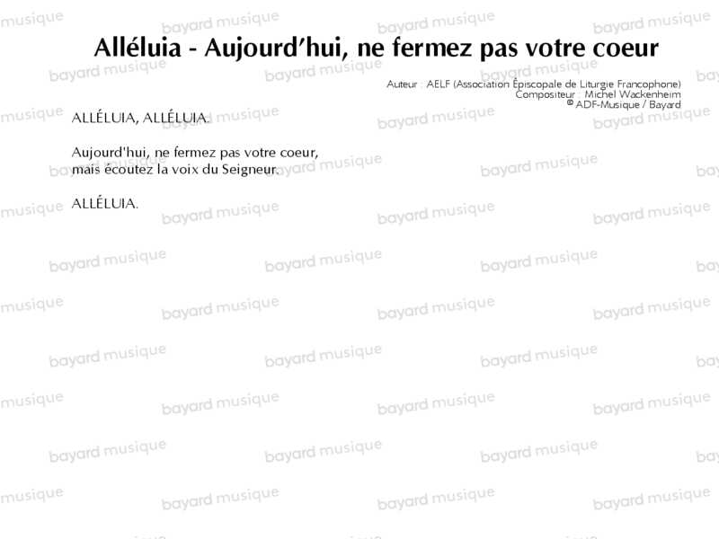 Alléluia - Aujourd’hui, ne fermez pas votre coeur