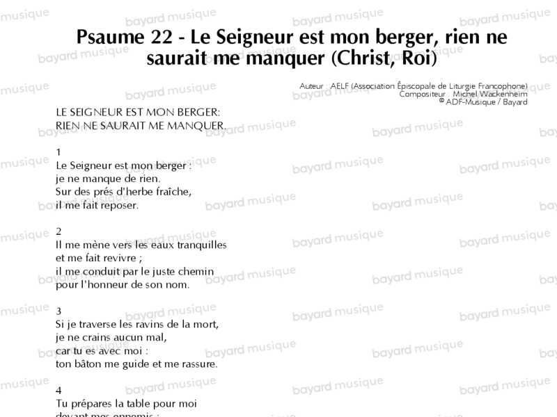 Psaume 22 - Le Seigneur est mon berger, rien ne saurait me manquer (Christ, Roi)