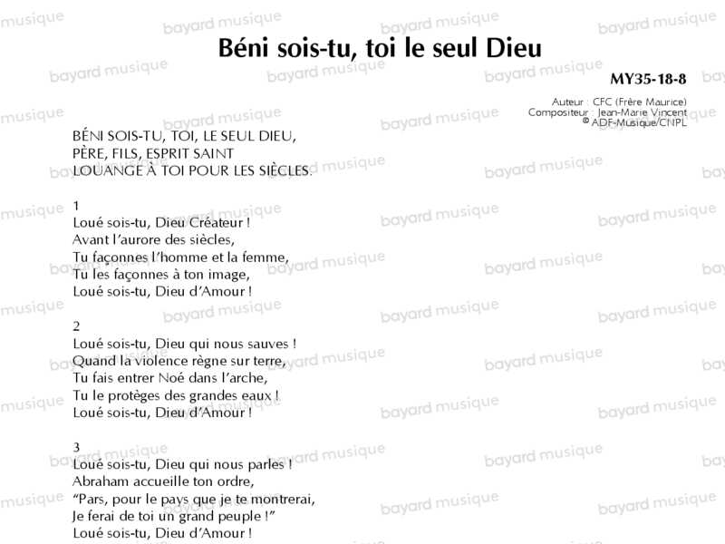 Béni sois-tu, toi le seul Dieu - MY35-18-8