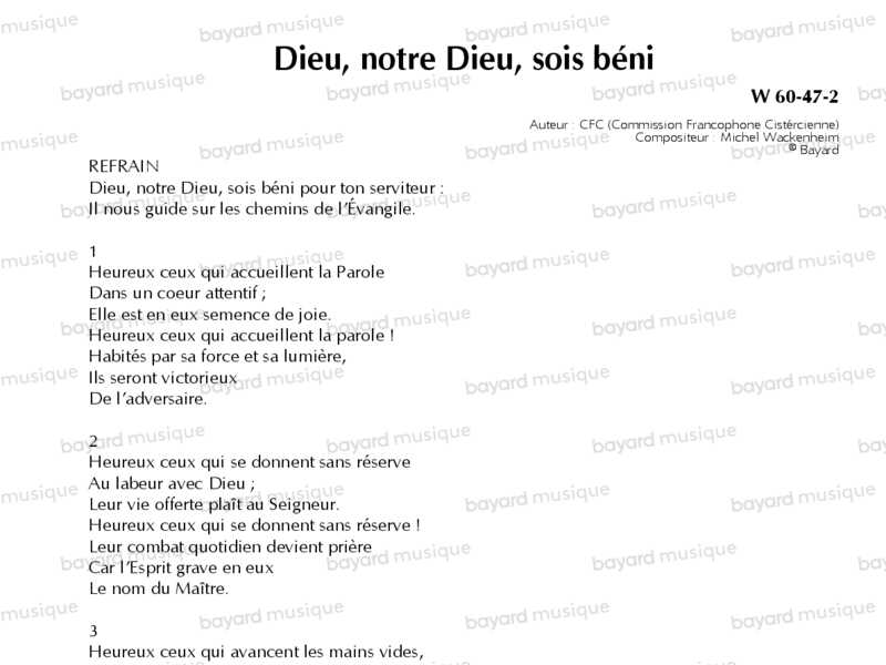 Dieu, notre Dieu, sois béni - W60-47-2