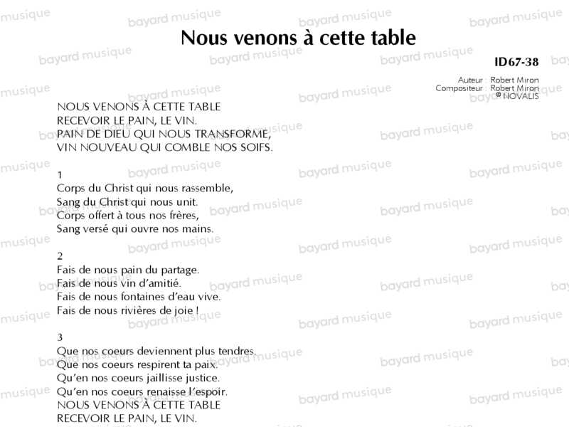 Nous venons à cette table - ID67-38