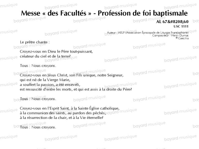 Messe « des Facultés » - Profession de foi baptismale - AL67‐60
