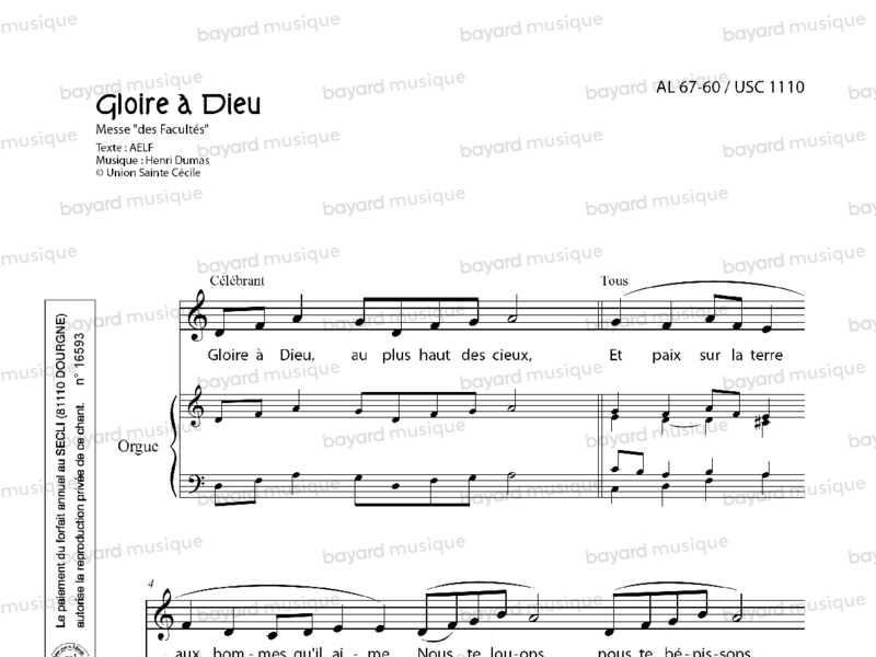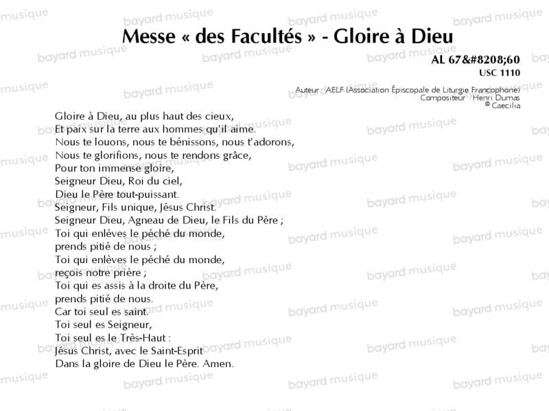 Messe « des Facultés » - Gloire à Dieu - AL67‐60