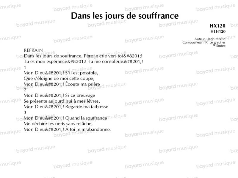 Dans les jours de souffrance - HX120