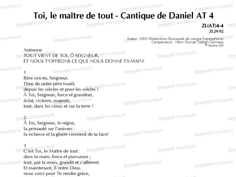 Toi, le maître de tout - Cantique de Daniel AT 4 - ZL(AT)4-4