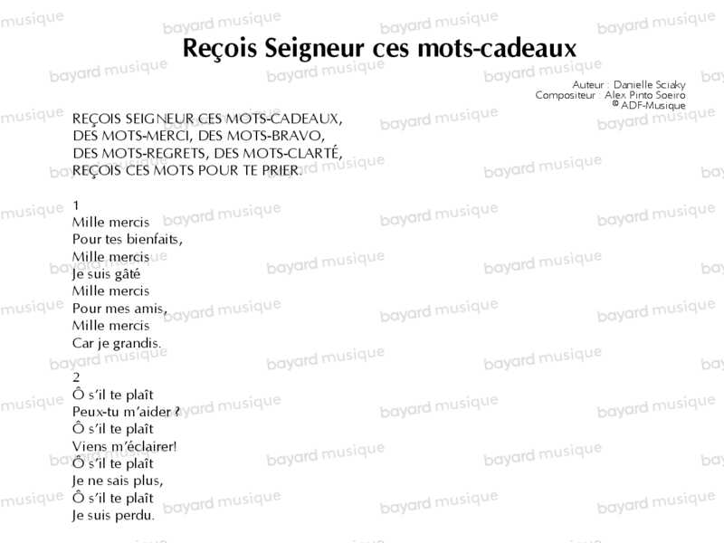 Reçois Seigneur ces mots-cadeaux