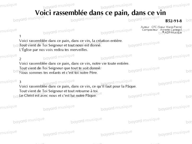 Voici rassemblée dans ce pain, dans ce vin - B52-91-8
