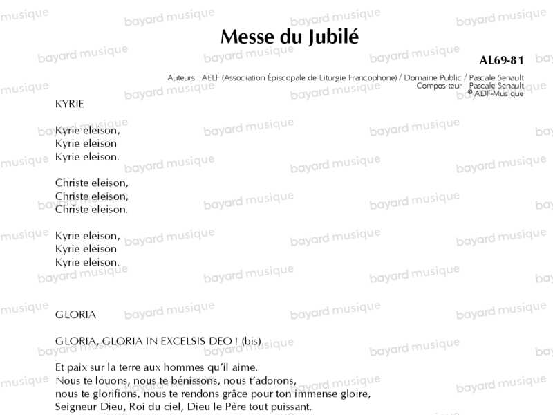 Messe complète comprenant : Kyrie, Gloria, Psaume, Alléluia, Prière universelle, Sanctus, Agnus Dei