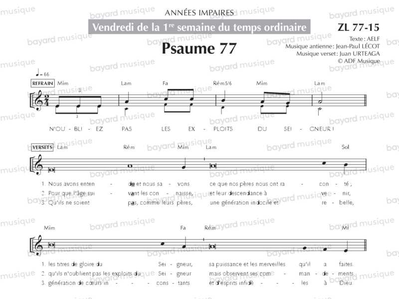 Vendredi de la 1re semaine du temps ordinaire, années impaires (Psaume 77, Alléluia) - ZL77-15