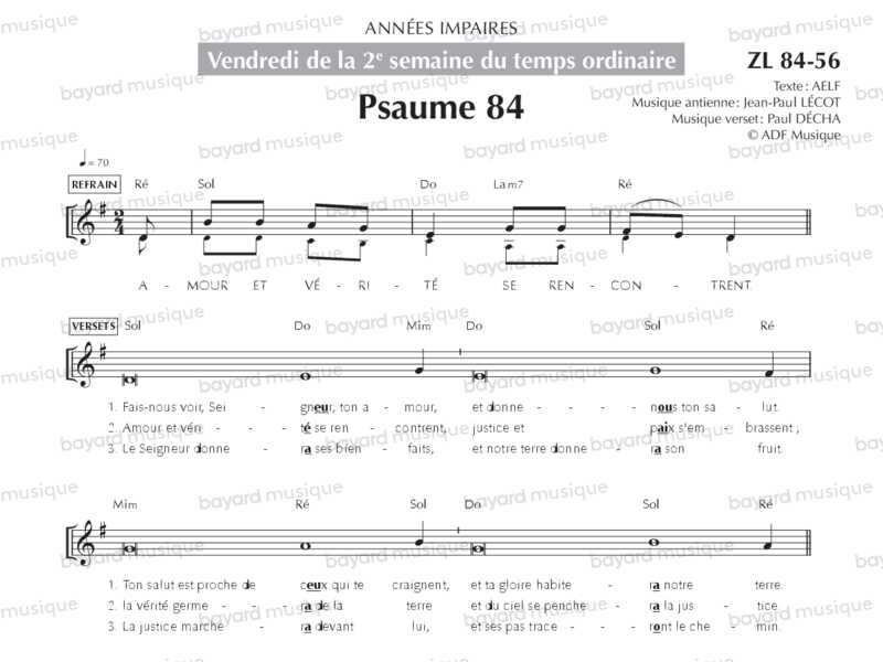 Vendredi de la 2e semaine du temps ordinaire, années impaires (Psaume 84, Alléluia) - ZL84-56