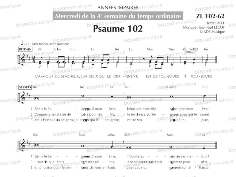 Mercredi de la 4e semaine du temps ordinaire, années impaires (Psaume 102, Alléluia) - ZL102-62