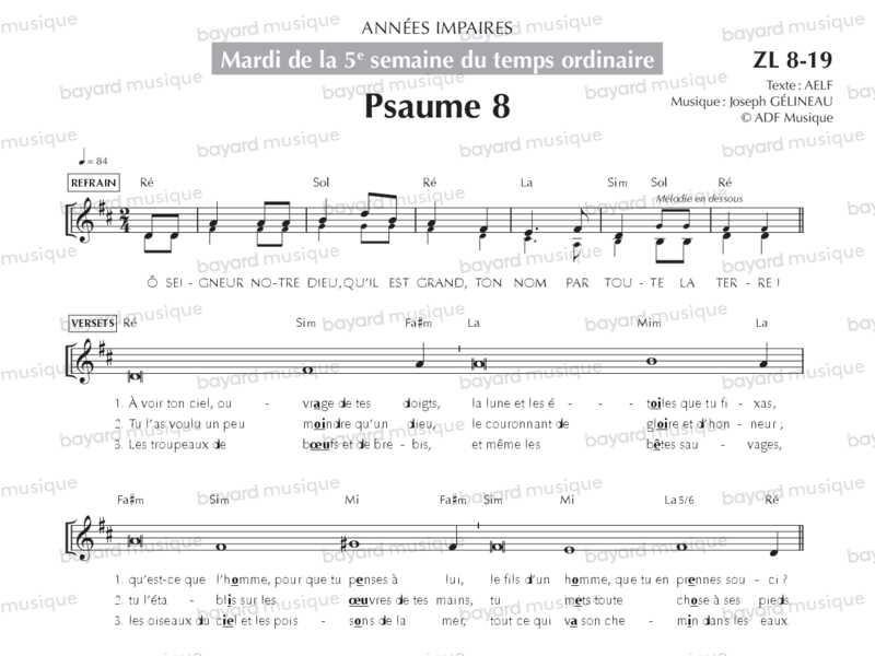 Mardi de la 5e semaine du temps ordinaire, années impaires (Psaume 8, Alléluia) - ZL8-19