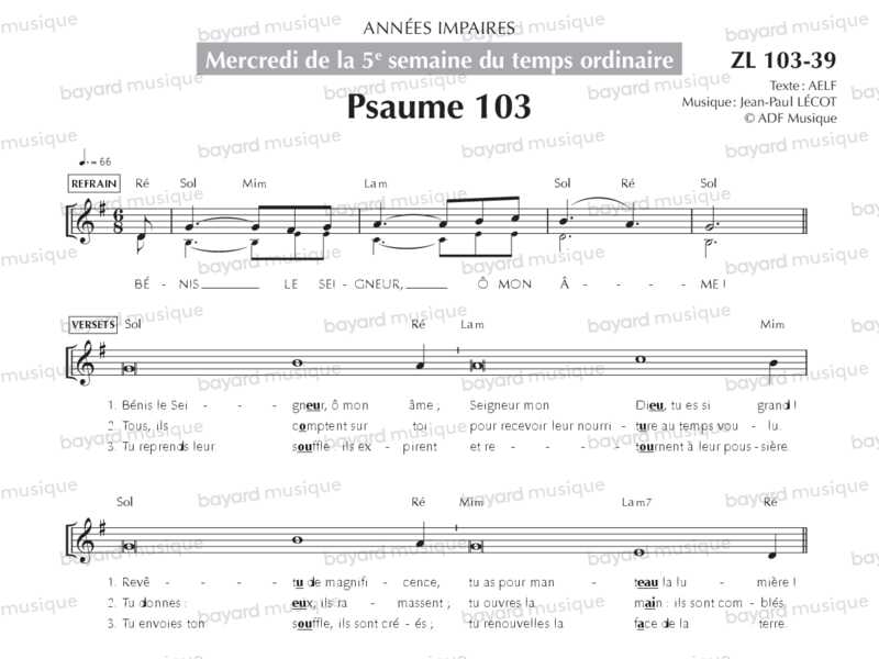 Mercredi de la 5e semaine du temps ordinaire, années impaires (Psaume 103, Alléluia) - ZL103-39
