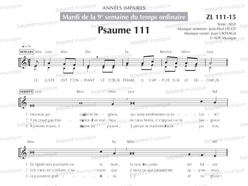 Mardi de la 9e semaine du temps ordinaire, années impaires (Psaume 111, Alléluia) - ZL111-15