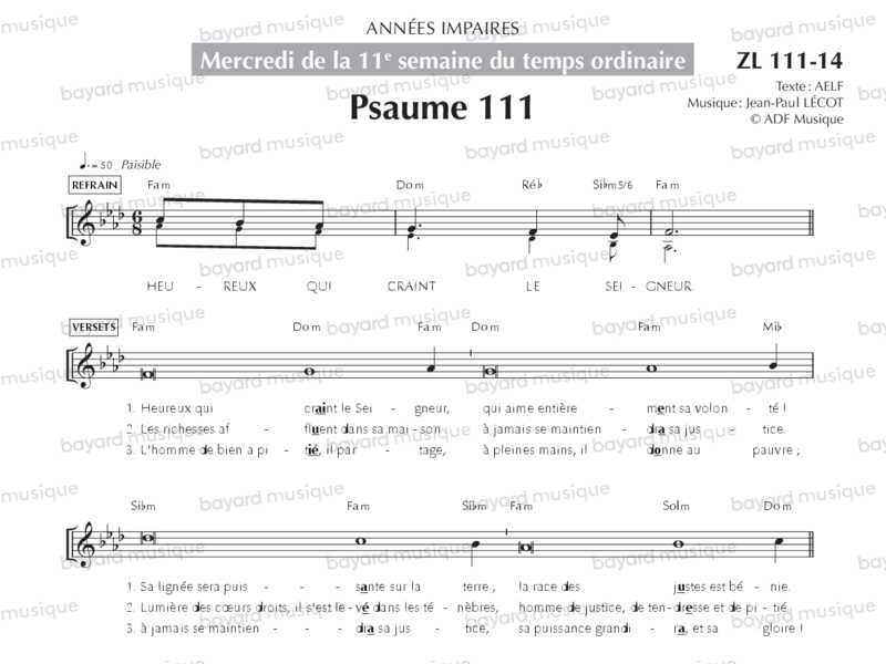 Mercredi de la 11e semaine du temps ordinaire, années impaires (Psaume 111, Alléluia) - ZL111-14