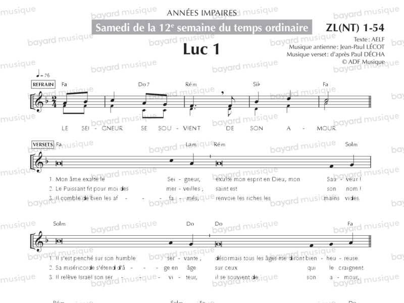 Samedi de la 12e semaine du temps ordinaire, années impaires (Cantique de Luc 1, Alléluia) - ZL(NT)1-54
