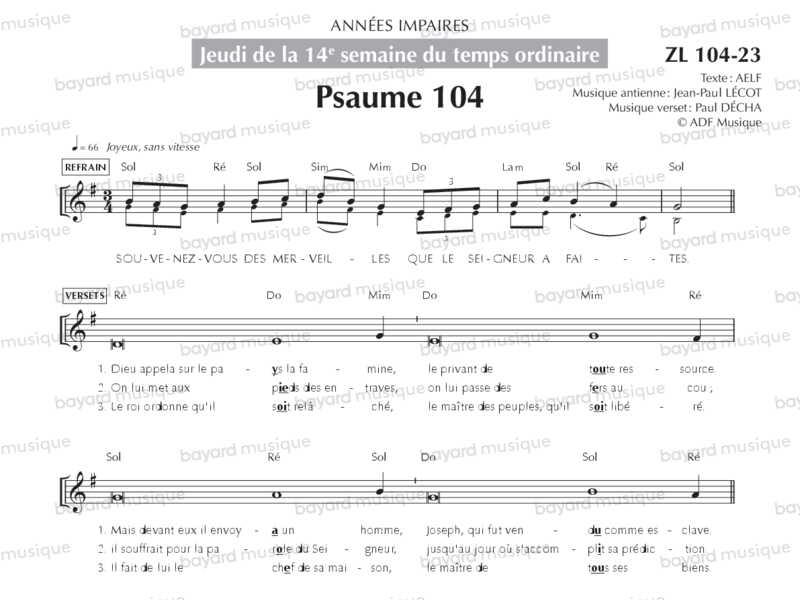 Jeudi de la 14e semaine du temps ordinaire, années impaires (Psaume 104, Alléluia) - ZL104-23