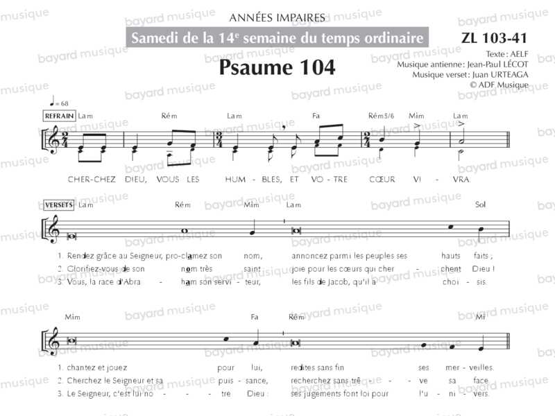 Samedi de la 14e semaine du temps ordinaire, années impaires (Psaume 104, Alléluia) - ZL103-41