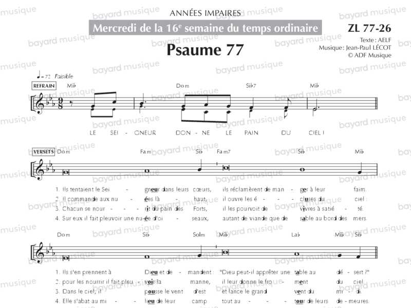 Mercredi de la 16e semaine du temps ordinaire, années impaires (Psaume 77, Alléluia) - ZL77-26