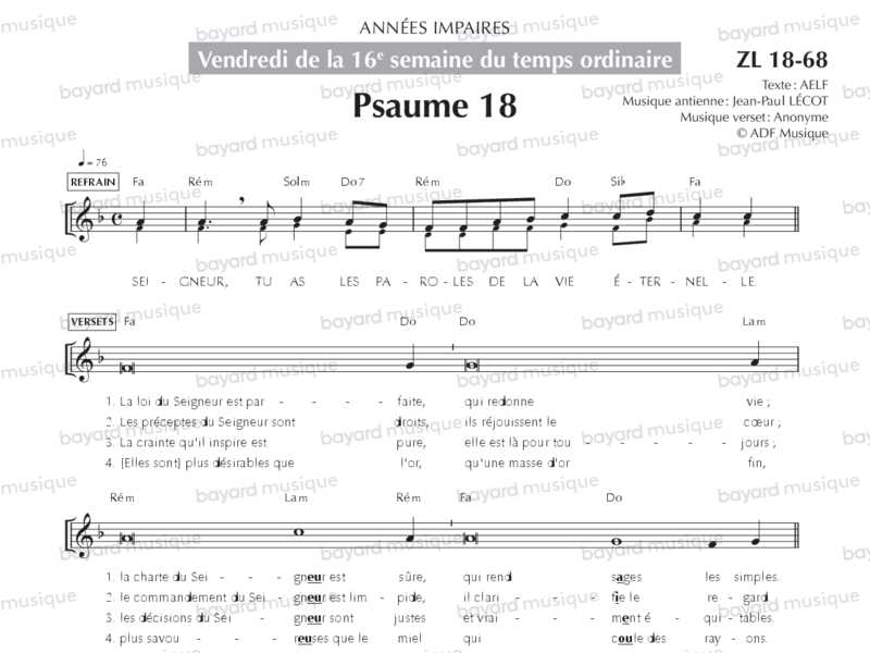 Vendredi de la 16e semaine du temps ordinaire, années impaires (Psaume 18, Alléluia) - ZL18-68