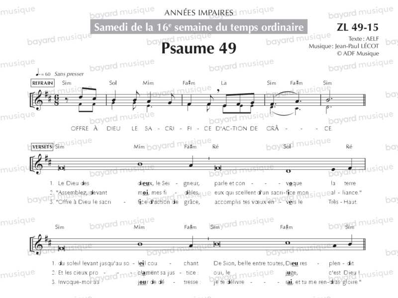 Samedi de la 16e semaine du temps ordinaire, années impaires (Psaume 49, Alléluia) - ZL49-15
