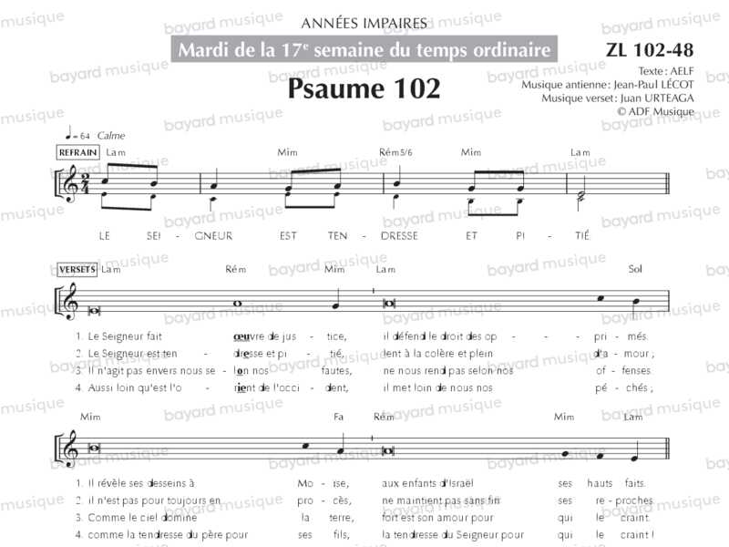 Mardi de la 17e semaine du temps ordinaire, années impaires (Psaume 102, Alléluia) - ZL102-48