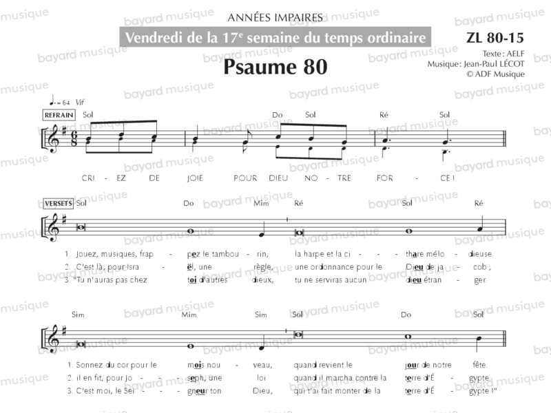 Vendredi de la 17e semaine du temps ordinaire, années impaires (Psaume 80, Alléluia) - ZL80-15