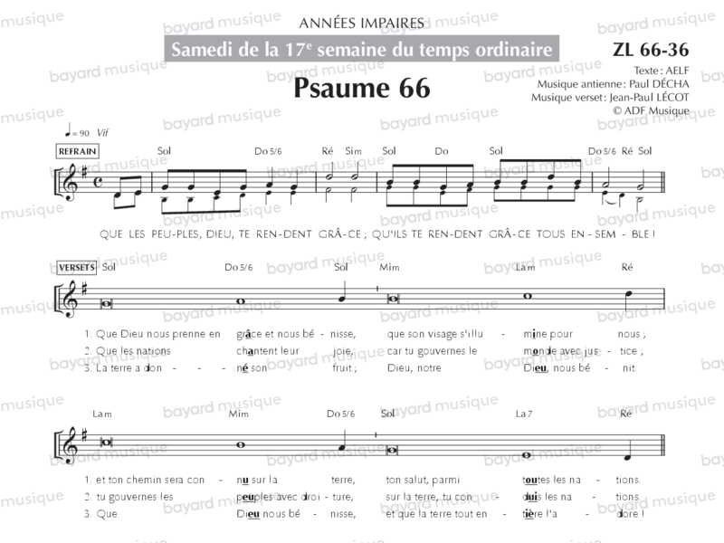 Samedi de la 17e semaine du temps ordinaire, années impaires (Psaume 66, Alléluia) - ZL66-36