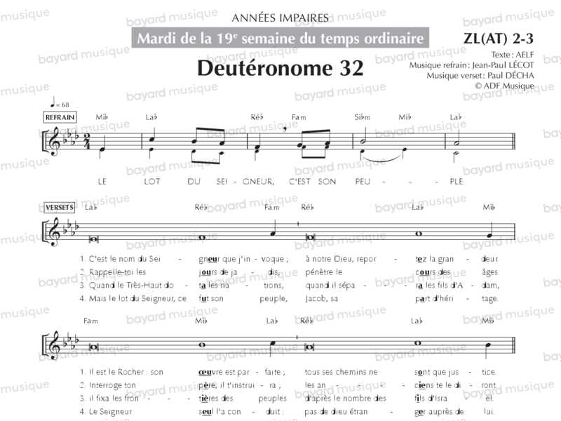 Mardi de la 19e semaine du temps ordinaire, années impaires (Livre du Deutéronome chap 32, Alléluia) - ZL(AT)2-3