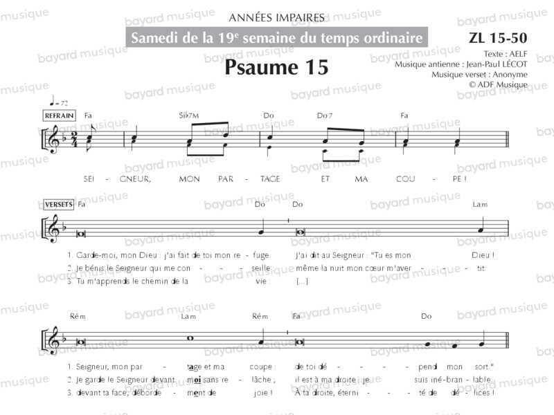 Samedi de la 19e semaine du temps ordinaire, années impaires (Psaume 15, Alléluia) - ZL15-50