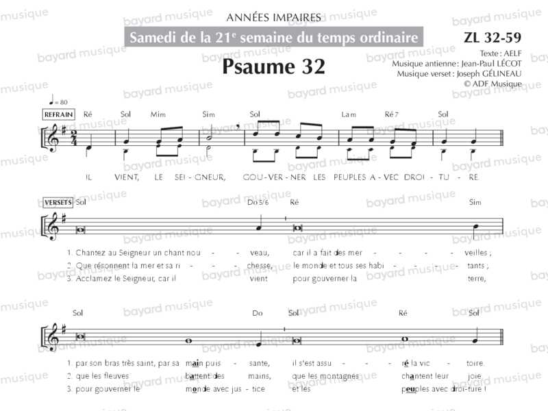 Samedi de la 21e semaine du temps ordinaire, années impaires (Psaume 32, Alléluia) - ZL32-59