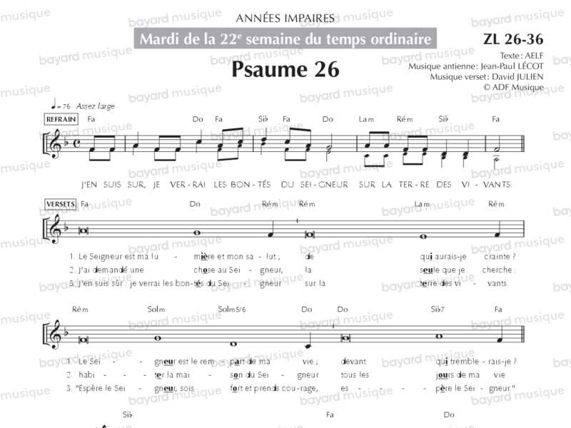 Mardi de la 22e semaine du temps ordinaire, années impaires (Psaume 26, Alléluia) - ZL26-36