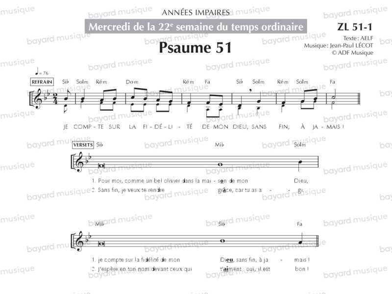 Mercredi de la 22e semaine du temps ordinaire, années impaires (Psaume 51, Alléluia) - ZL51-1