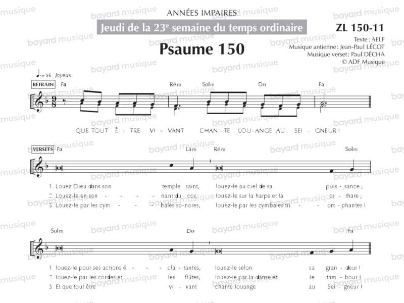 Jeudi de la 23e semaine du temps ordinaire, années impaires (Psaume 150, Alléluia) - ZL150-11