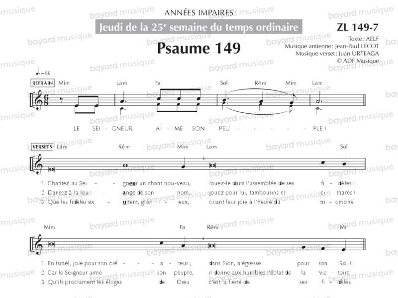 Jeudi de la 25e semaine du temps ordinaire, années impaires (Psaume 149, Alléluia) - ZL149-7