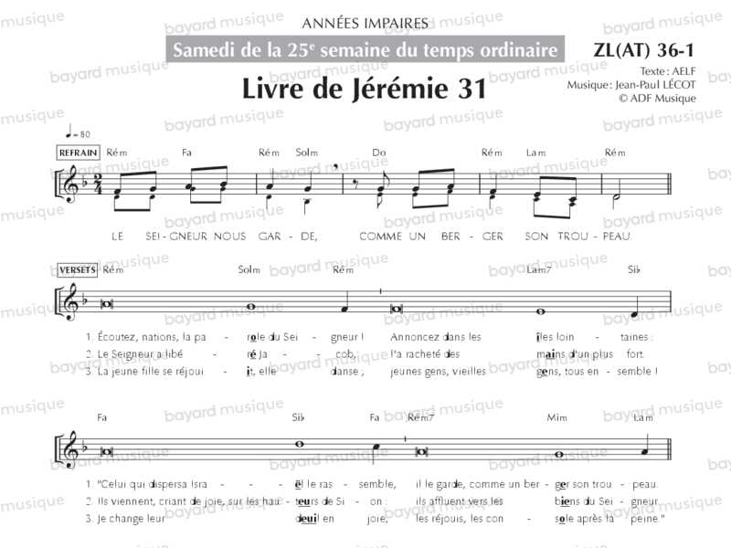 Samedi de la 25e semaine du temps ordinaire, années impaires (Cantique de Jérémie 31, Alléluia) - ZL(AT)36-1