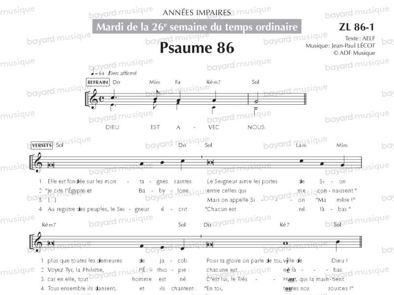 Mardi de la 26e semaine du temps ordinaire, années impaires (Psaume 86, Alléluia) - ZL86-1