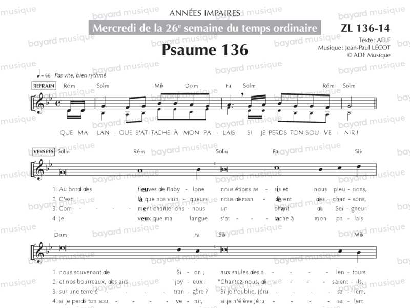 Mercredi de la 26e semaine du temps ordinaire, années impaires (Psaume 136, Alléluia) - ZL136-14