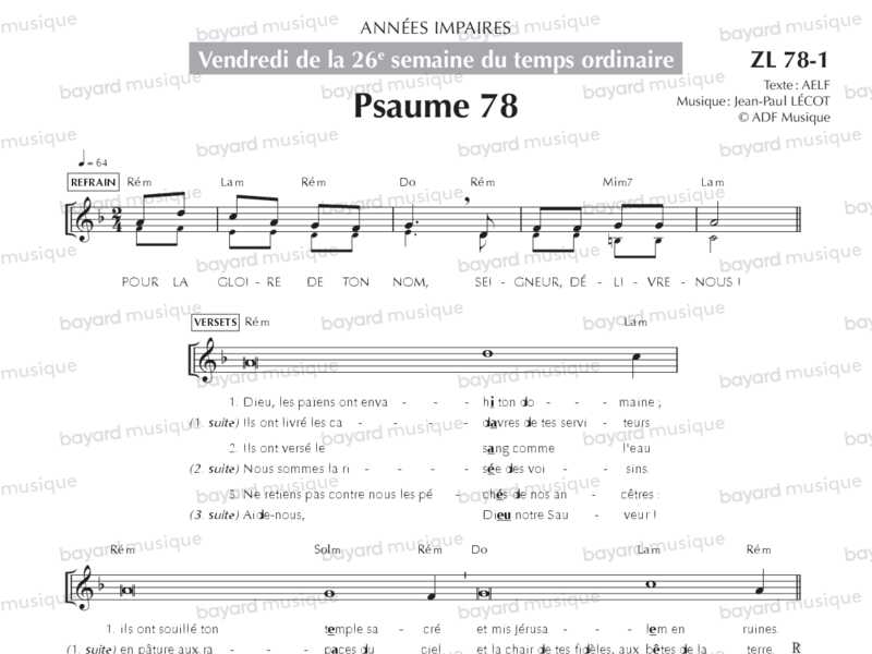 Vendredi de la 26e semaine du temps ordinaire, années impaires (Psaume 78, Alléluia) - ZL78-1