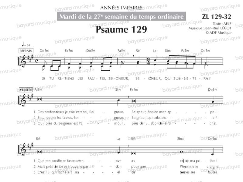 Mardi de la 27e semaine du temps ordinaire, années impaires (Psaume 129, Alléluia) - ZL129-32