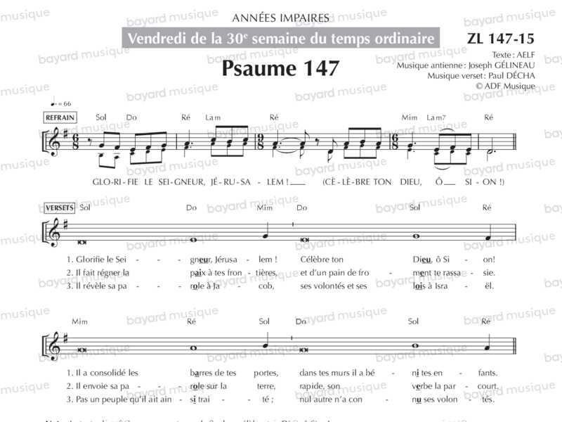 Vendredi de la 30e semaine du temps ordinaire, années impaires (Psaume 147, Alléluia) - ZL147-15