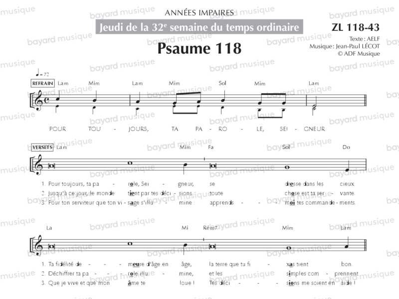 Jeudi de la 32e semaine du temps ordinaire, années impaires (Psaume 118, Alléluia) - ZL118-43