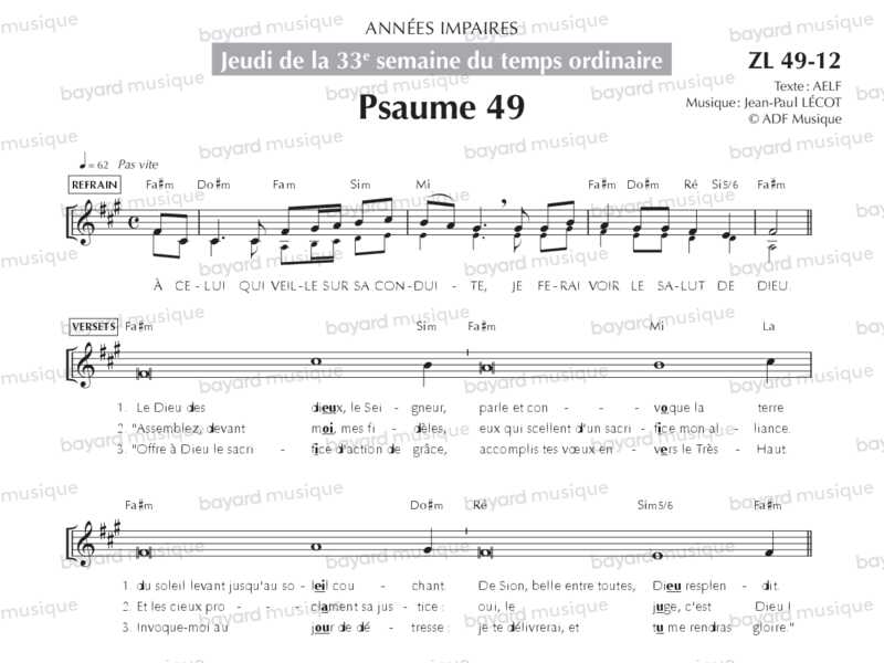 Jeudi de la 33e semaine du temps ordinaire, années impaires (Psaume 49, Alléluia) - ZL49-12