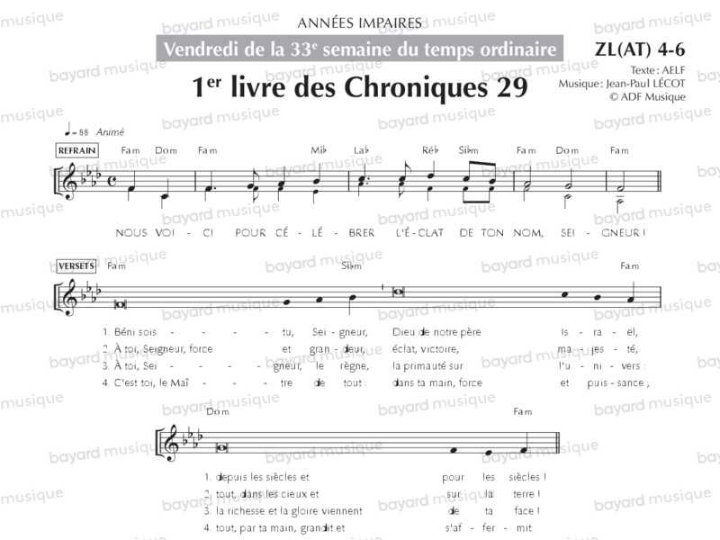 Vendredi de la 33e semaine du temps ordinaire, années impaires (1er livre Chroniques 29, Alléluia) - ZL(AT)4-6