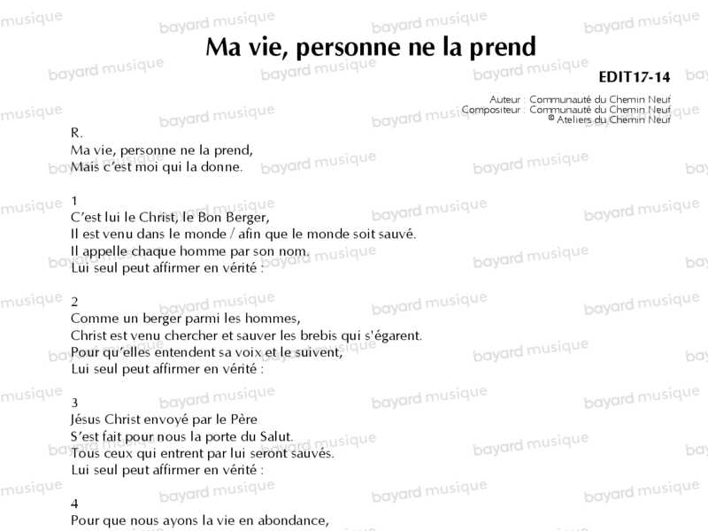 Cantique du Bon Berger. Hymne de Carême, communion, ordination, engagements.